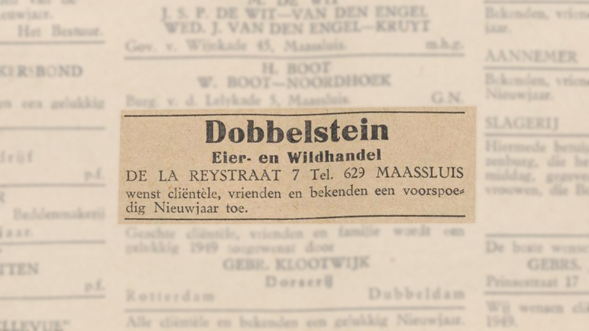 Ook Dirk Dobbelstein en zijn zoon werden op 7 mei 1945 aangehouden door marechaussee Willem Maurits, commandant van de BS-arrestatieploeg in Maassluis, en op verdenking van NSB-lidmaatschap overgebracht naar interneringskamp De Vergulde Hand.