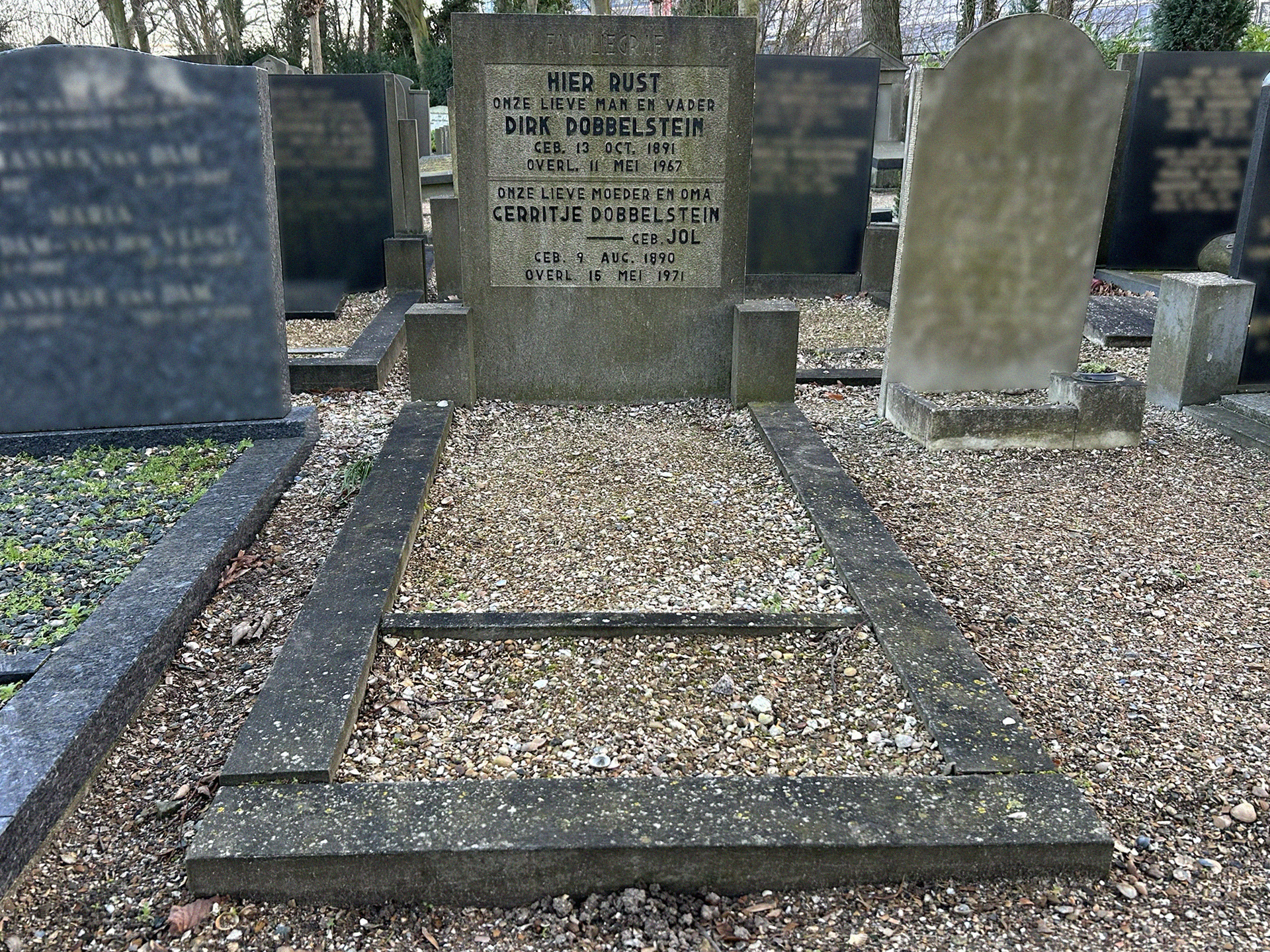 Dirk Dobbelstein overleed op 11 mei 1967 in Maassluis. Zijn vrouw Gerritje volgde op 15 mei 1971. Beiden zijn in één graf begraven op de Algemene Begraafplaats aan de Willem de Zwijgerstraat.