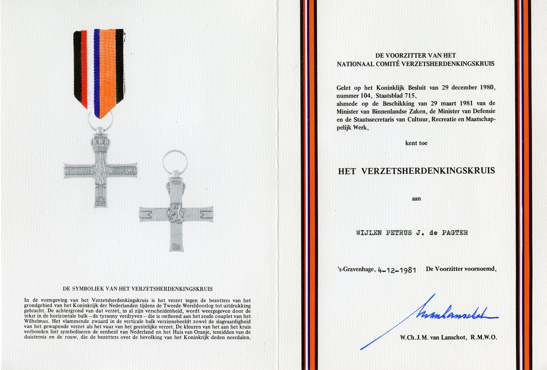 Het Verzetskruis werd al in 1946 ingesteld en was bedoeld als directe erkenning voor uitzonderlijke moed en beleid tijdens de oorlog. Deze onderscheiding is zeer zeldzaam en werd slechts 95 keer toegekend, onder meer aan Helena (Tante Riek) Kuipers-Rietberg en Johannes Post.
